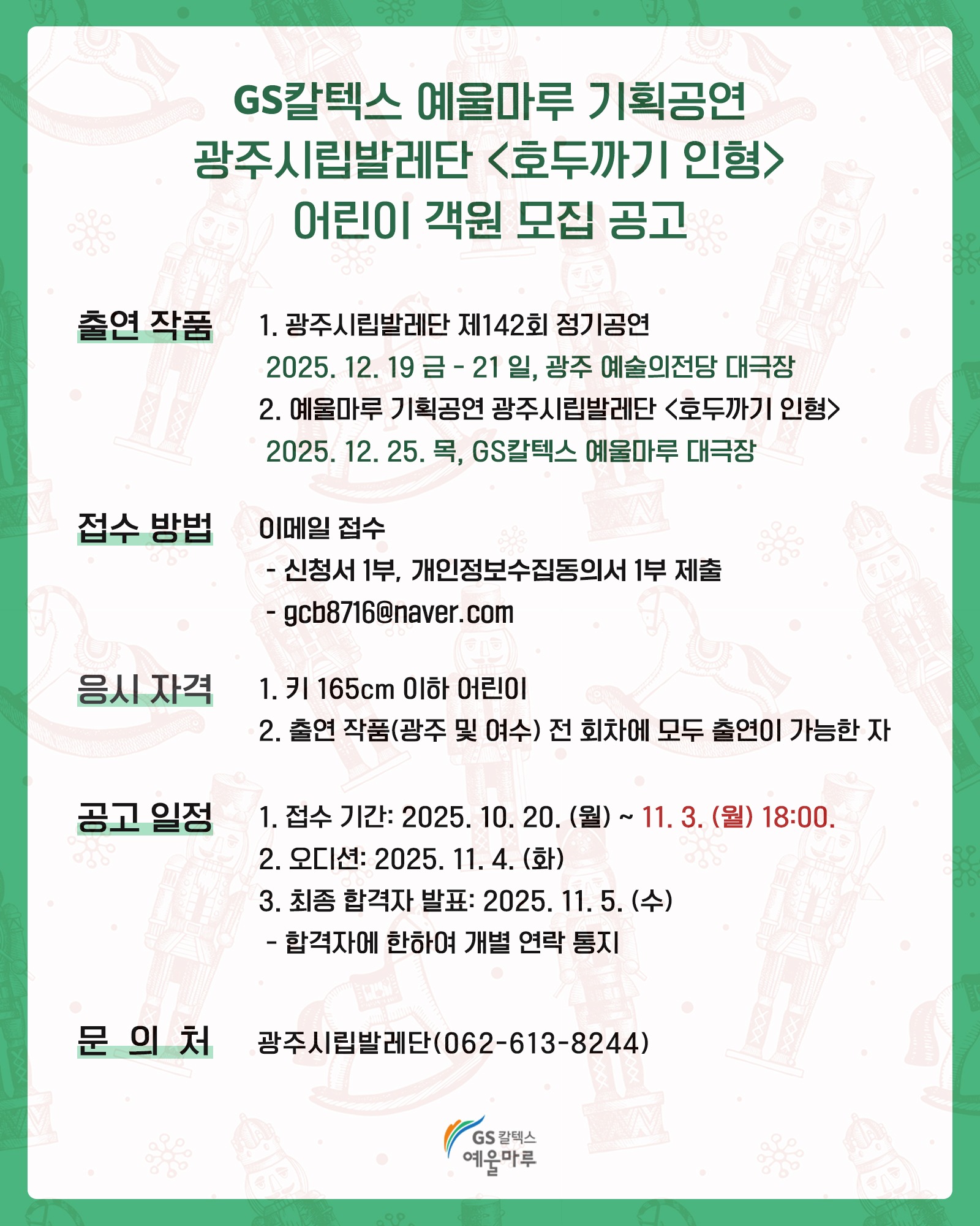 기획공연 광주시립발레단 <호두까기 인형> 어린이 객원 모집 공고