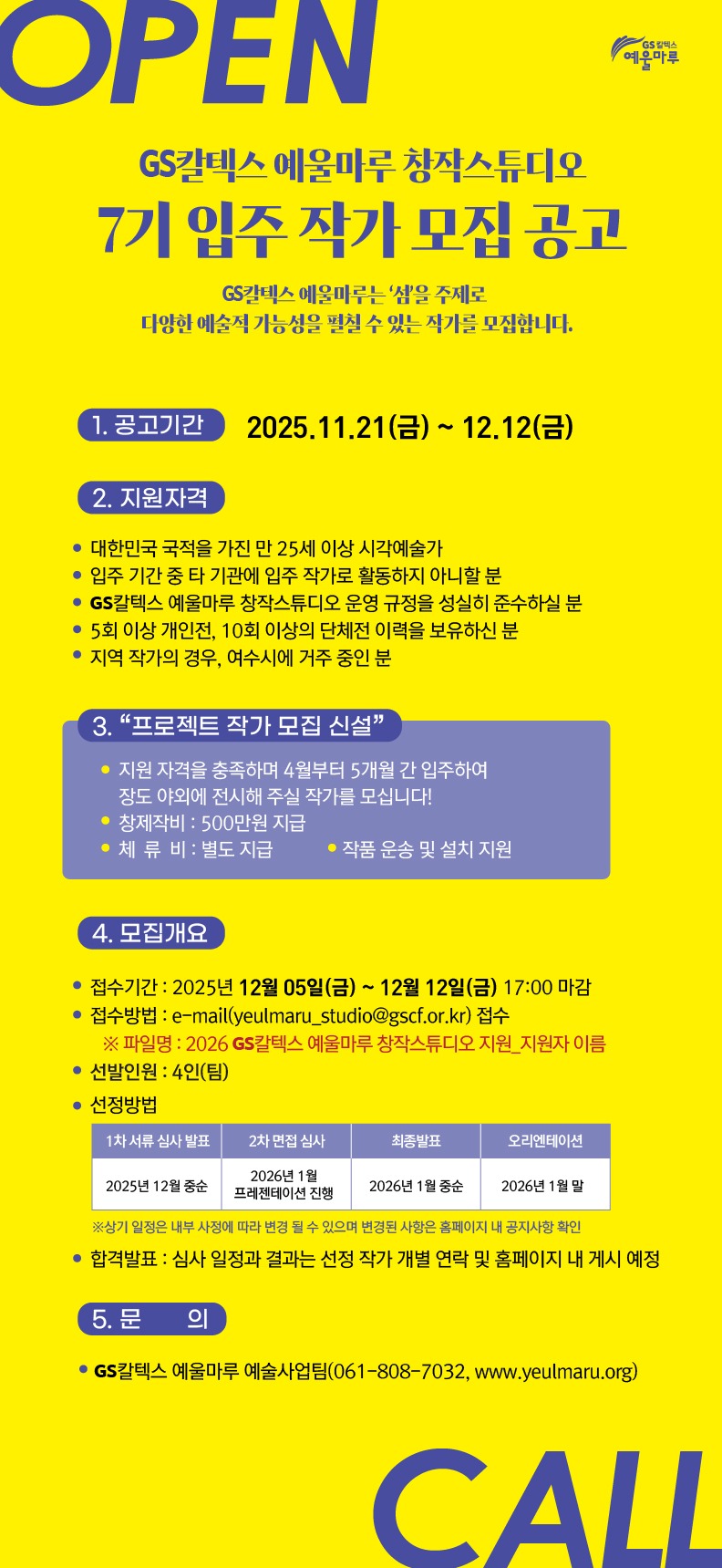 GS칼텍스 예울마루 창작스튜디오 7기 입주작가 모집 공고