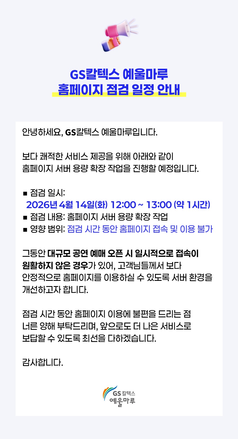 GS칼텍스 예울마루 홈페이지 점검 일정 안내