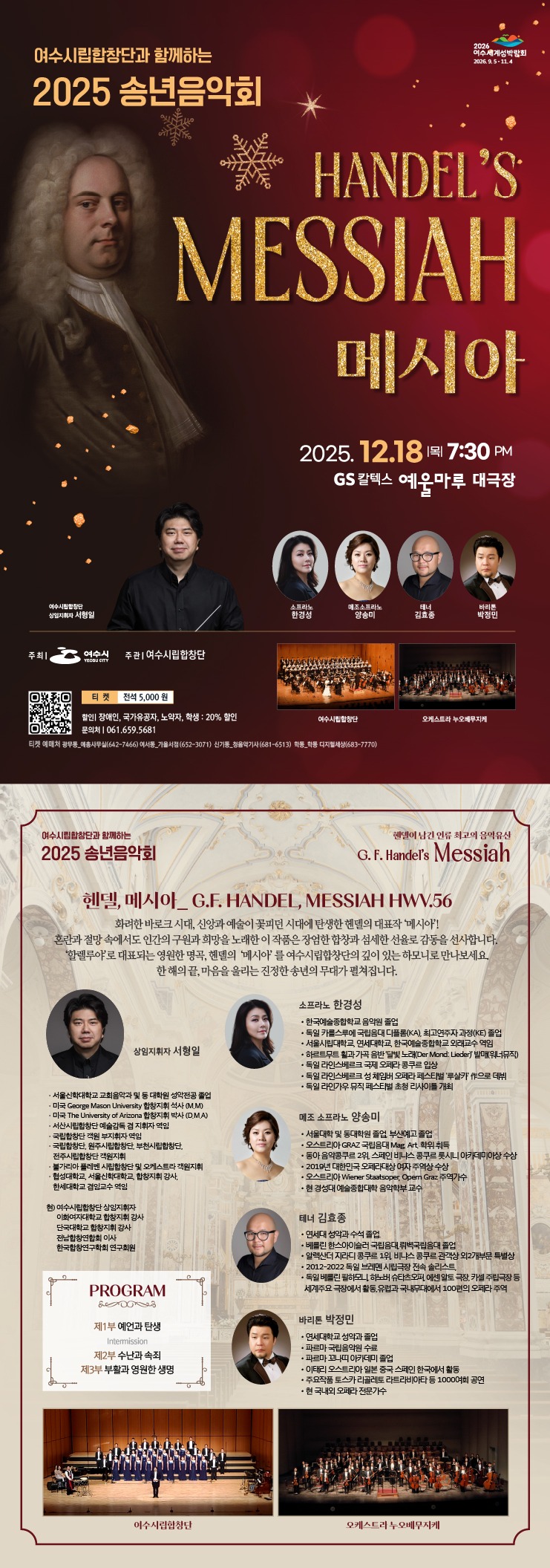 여수시립합창단과 함께하는 2025년 송년음악회 <HANDAL'S MESSIAH>