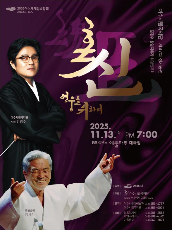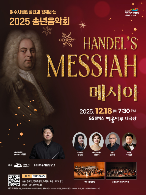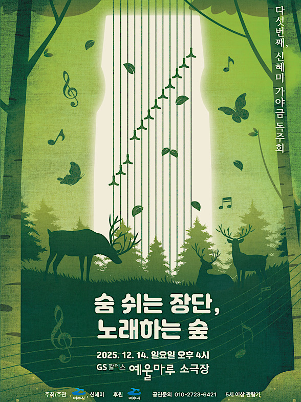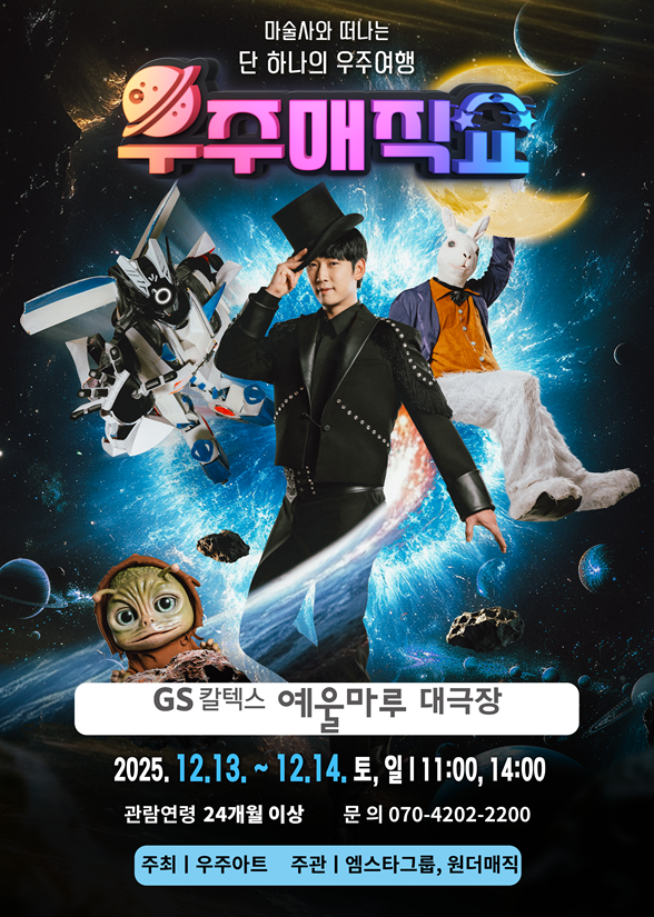 | 일시 | 2025년 12월 19일(금) ~ 12월 24일(수) 12월 19일(금) 15:30, 19:00 12월 20일(토) 14:00, 17:00 12월 21일(일) 14:00, 17:00 12월 23일(화) 10:30, 15:00 12월 24일(수) 10:30, 19:30 * 12월 19일(금) 15:30, 19:00 공연은 전관 예매로 매진되었습니다. * 12월 22일(월)은 예울마루 휴관일로 공연을 진행하지 않습니다. |